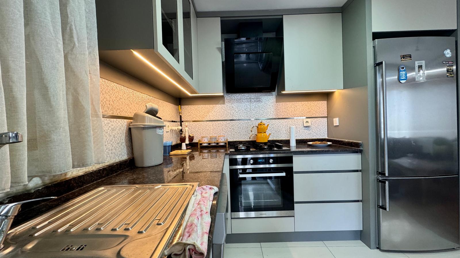 Antalya Hurma’da, 2 bloktan oluşan modern bir sitede yer alan bu daire;