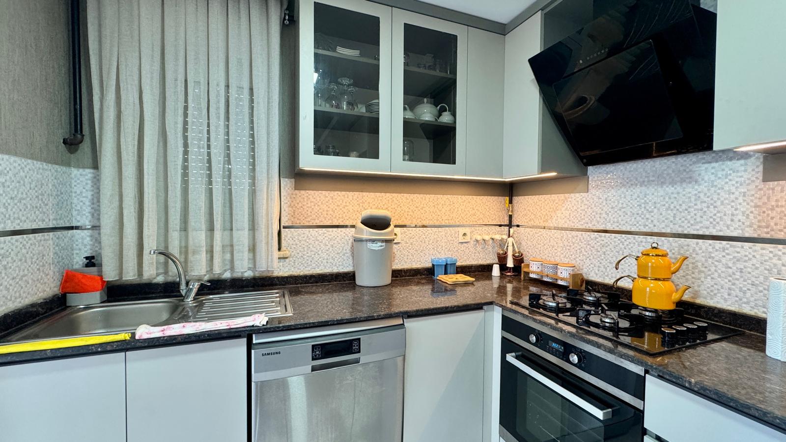Daire A’dan Z’ye tüm eşyalarla donatılmıştır.