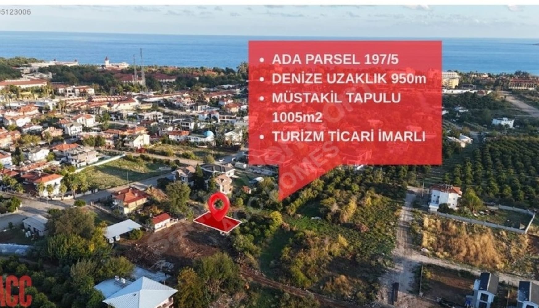 KEMER TEKİROVA’DA , DENİZE VE OTELLER BÖLGESİNE YAKIN KONUMDA KÖŞE PARSELDE BULUNAN MÜSTAKİL TAPULU TURİZM TİCARİ İMARLI ARAZİMİZ SATILIKTIR.